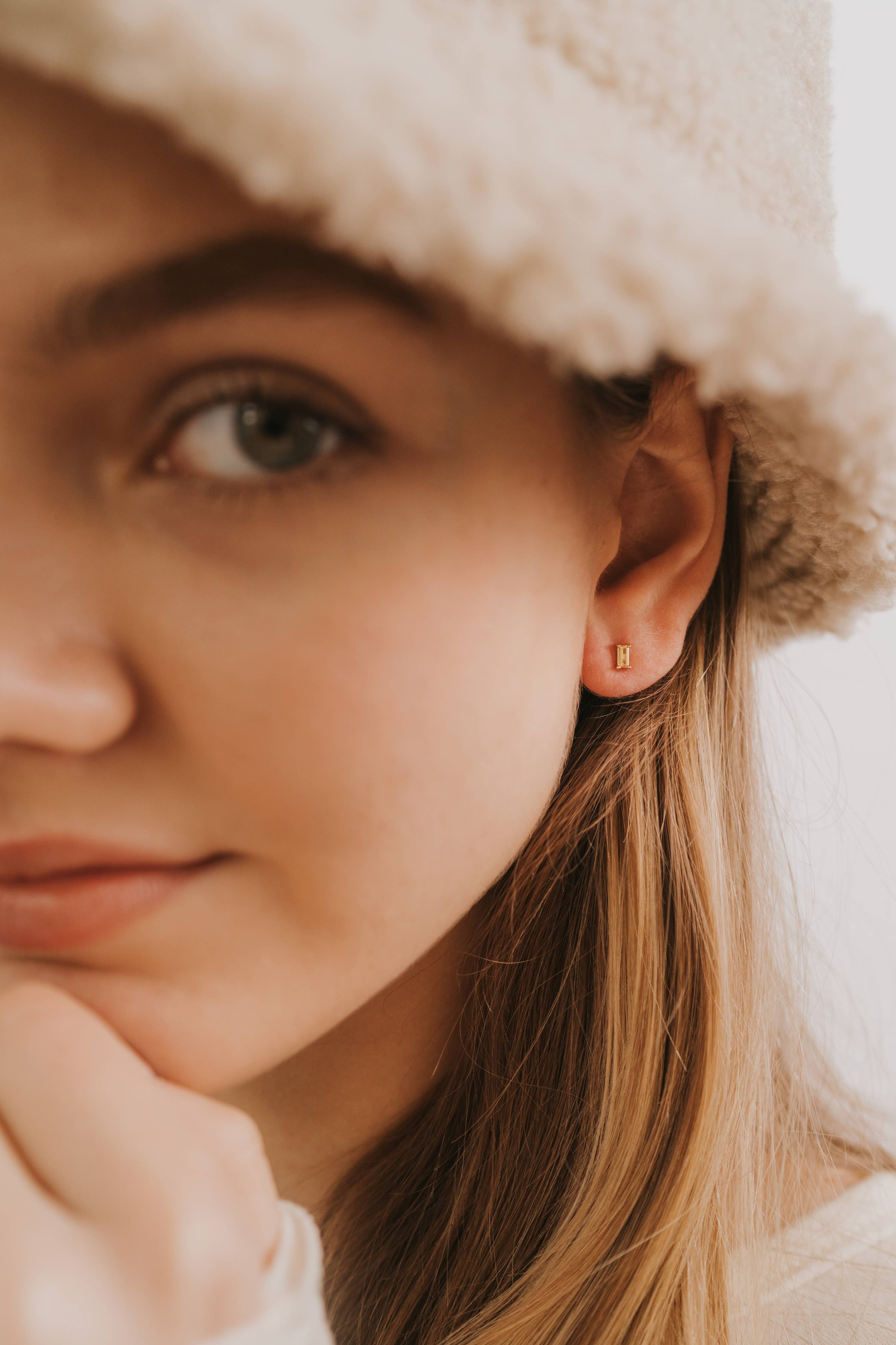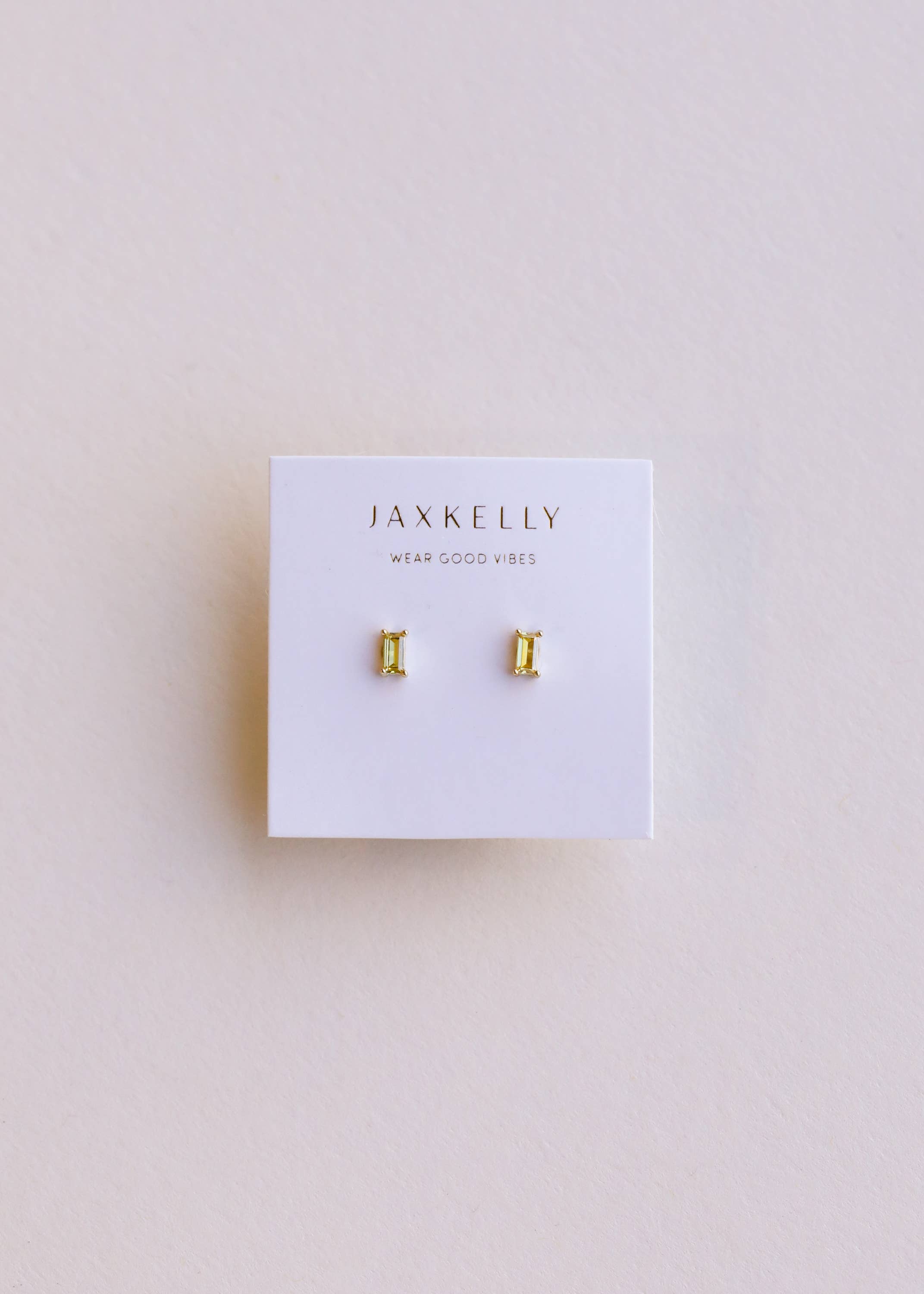 A pair of classic baguette stud earrings designed to add a pop of color. Made for stacking, layer in this classic shape for a fresh new look.