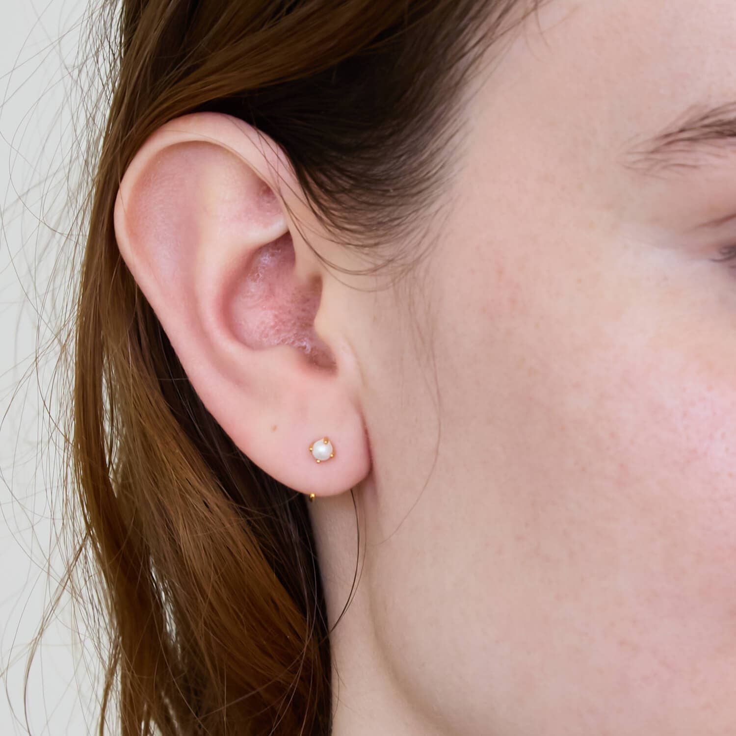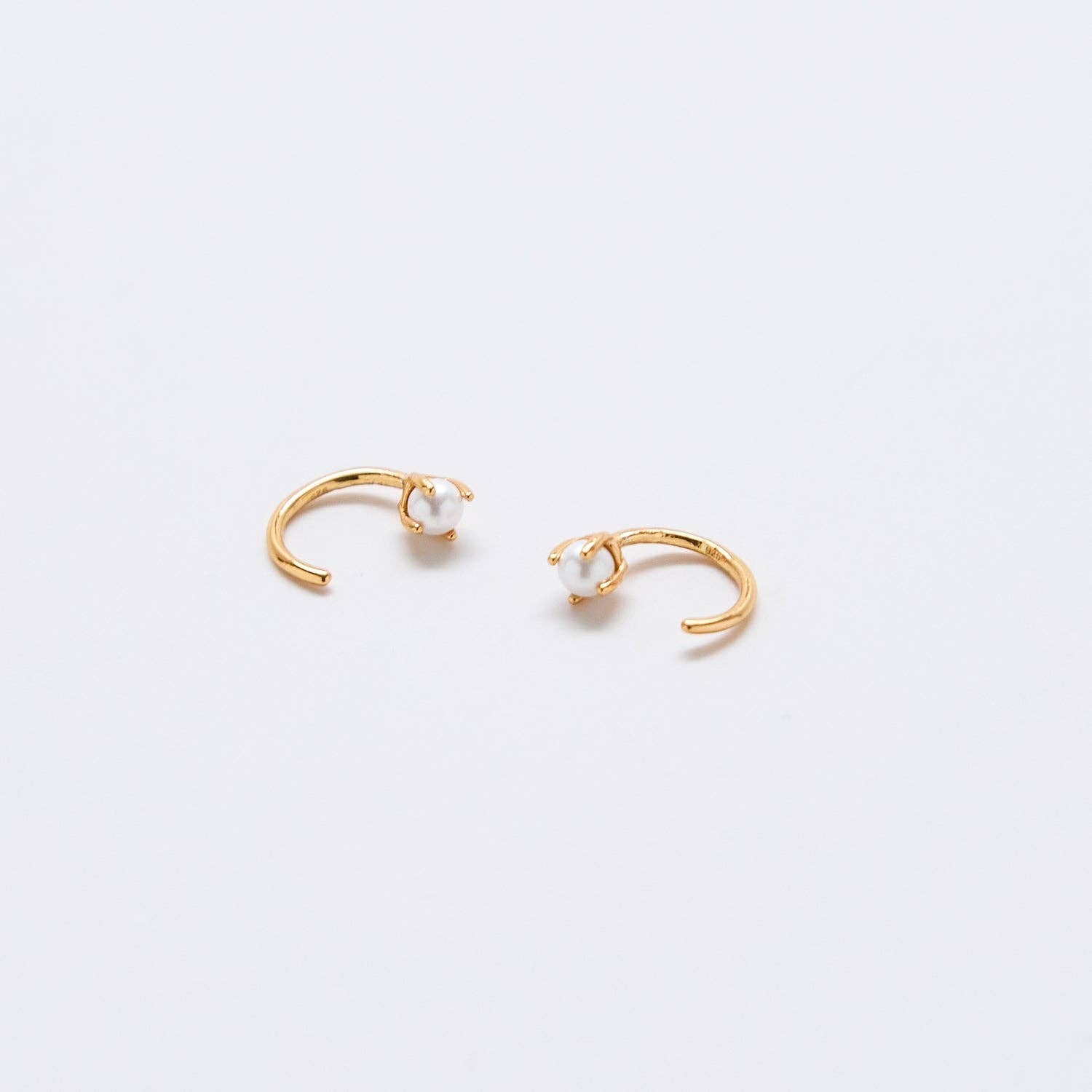 Add a touch of natural elegance to your look with these Pearl Gold Open Hoop Earrings from Admiral Row. These earrings are ideal for adults and are perfect for formal and casual occasions. Each earring is anchored by a beautiful natural pearl stone that adds an earthy touch to its design. It's crafted from timeless gold with a delicate finish that adds subtle sophistication to any look. These tiny open hoop earrings can be worn independently or paired with other studs to create an earring party that suits your style.