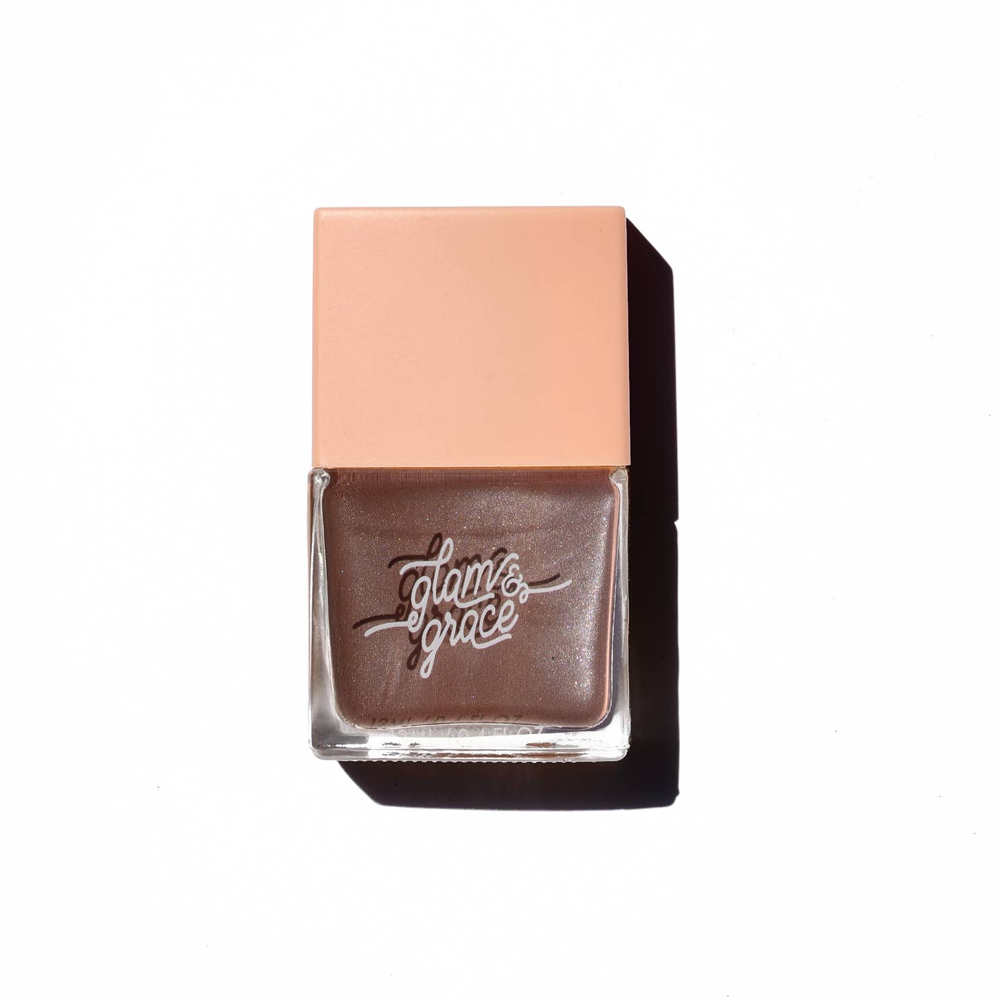 Hello there, non-toxic nail polish! This creme polish has a brown base with a magical glowy pearlescent sheen that shifts subtly in light.