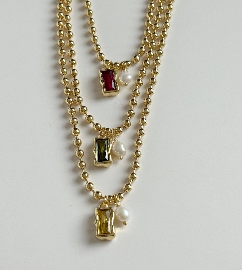 Rectangular Baguette Pendant Necklace - Emerald Green