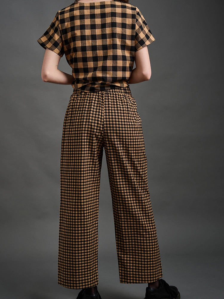 * 100% Cotton * Small-batch yarn dyed * Slash pockets at waist * Elastic at back waist * Adjustable self tie at front waist. * Inseam of size M is 26" * Made fair trade in Nepal by one of our longstanding production partners